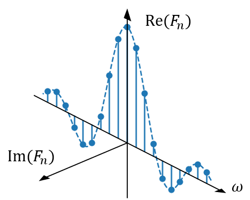 \\[ F_n = \frac 1T \int_T f(x) e^{-in\Omega x} \dd x \\]这里注意指数需要添加负号,因为上文提到了复变函数的正交性需要取共轭。