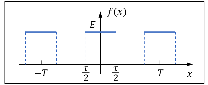 接下来看一个示例,处理如下所示的孤立矩形脉冲 \\( f(x) = \begin{cases} E & |x| \le \frac \tau 2 \ 0 & |x| \gt \frac \tau 2 \ \end{cases} \\)