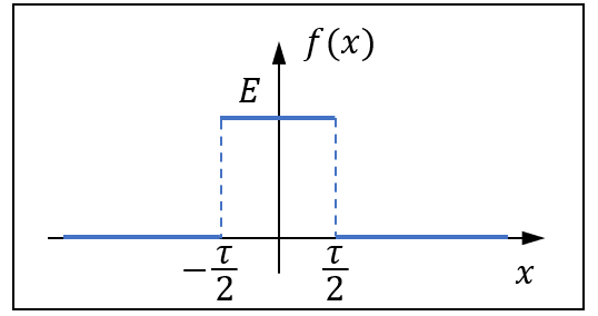 接下来看一个示例,处理如下所示的孤立矩形脉冲 \\( f(x) = \begin{cases} E & |x| \le \frac \tau 2 \ 0 & |x| \gt \frac \tau 2 \ \end{cases} \\)